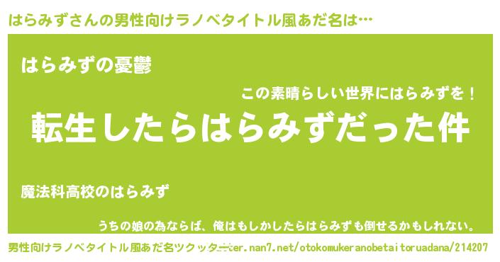 | 胡散臭い通販商品みたいなあだ名 | 『モテモテ間違いなし霊験あらたかなお札…その名も「はらみず」』 |