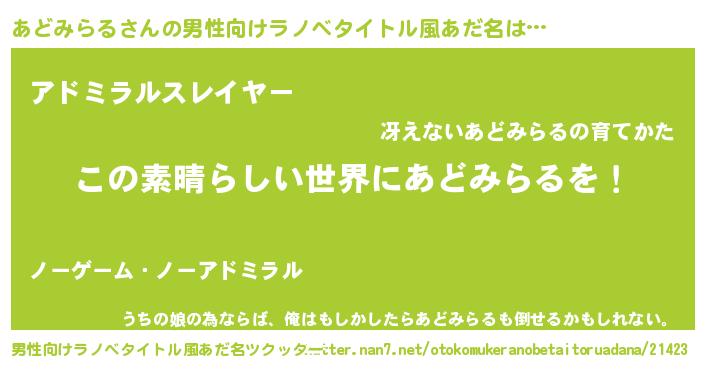 | 女子向けラノベタイトル風あだ名 | 『乙女ゲームの破滅フラグしかない悪役あどみらるに転生してしまった…』 |