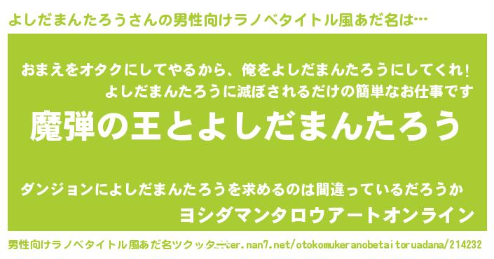 | 意味不明あだ名 | 『住所不定無職よしだまんたろう(1歳)』 |