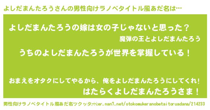 | 伝説のあだ名 | 『覚醒した遊び人よしだまんたろう』 |