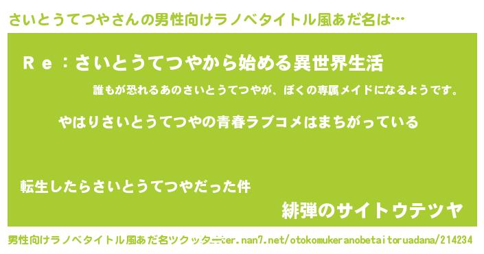 | 女子向けラノベタイトル風あだ名 | 『さいとうてつやの雑貨屋さん』 |