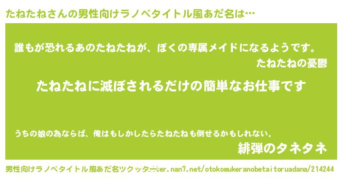 | ヘコむあだ名 | 『たねたね(遠い目)』『たねふぇ~』 |