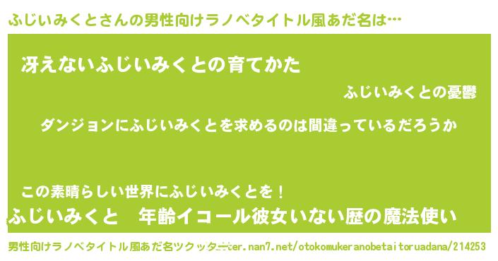 | 女子向けラノベタイトル風あだ名 | 『ふじいみくとの卵を拾いまして』 |
