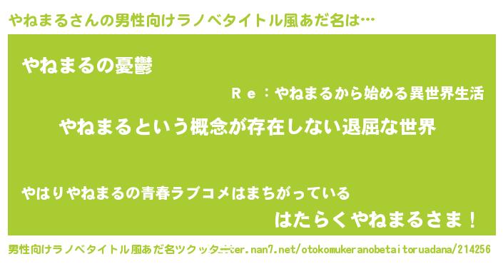 | ヘコむあだ名 | 『やねまる(笑)』『やねもー』 |