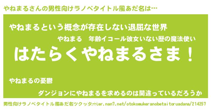 | ヒーロー風カッコイイあだ名 | 『ネオヤネマル』『暗黒騎士ヤネ』 |