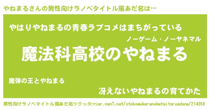 | 伝説のあだ名 | 『秘められし陰陽師やねまる』 |