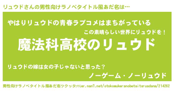 | 女子向けラノベタイトル風あだ名 | 『リュウドなんてお断りですっ。』 |