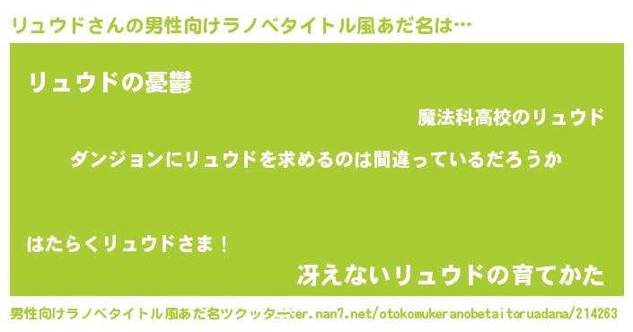 | 胡散臭い通販商品みたいなあだ名 | 『伝統あるサプリメント…その名も「リュウド」』 |