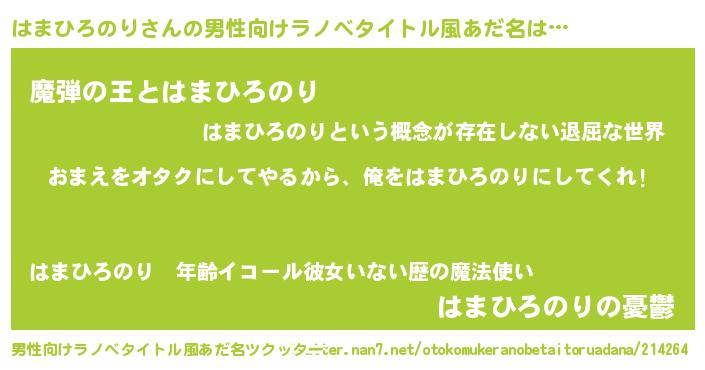 | 女子向けラノベタイトル風あだ名 | 『はまひろのり恋絵巻』 |