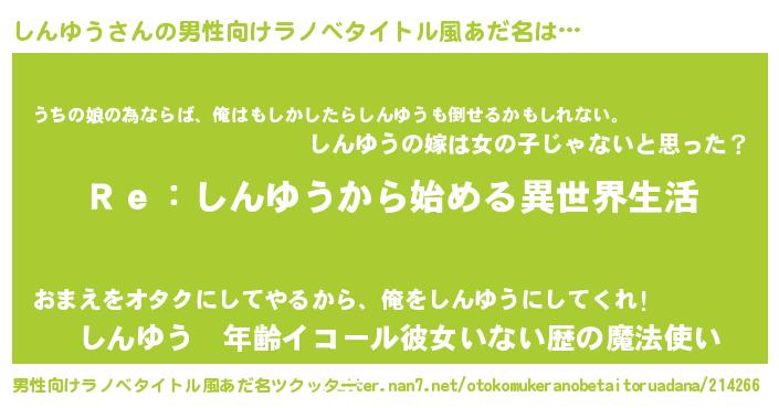 しんゆうさんの男性向けラノベタイトル風あだ名をツクッター!