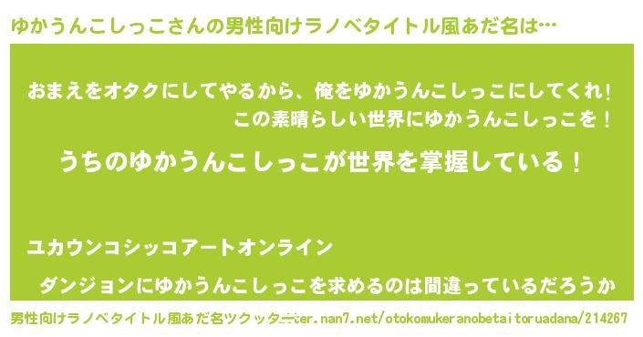 | 女子向けラノベタイトル風あだ名 | 『男装ゆかうんこしっこの憂鬱な任務』 |
