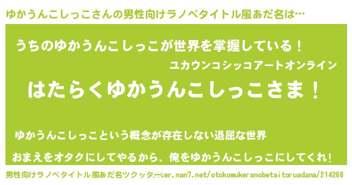| 欧米人風あだ名 | 『アンジェラ・ゆかうんこしっこ』 |