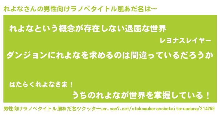 | ヒーロー風カッコイイあだ名 | 『暗黒騎士レヨ』『ネオレヨナ』 |