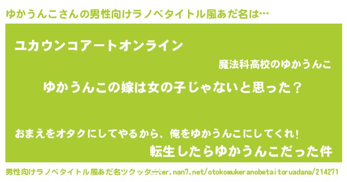 | 女子向けラノベタイトル風あだ名 | 『ゆかうんこ様がみてる』 |