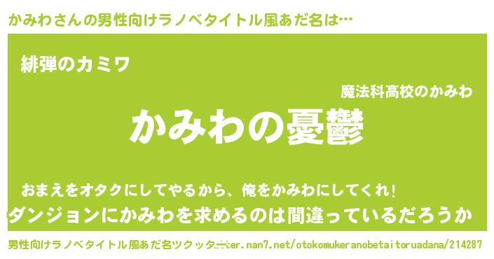 | 女子向けラノベタイトル風あだ名 | 『(仮)かみわのやんごとなき事情』 |