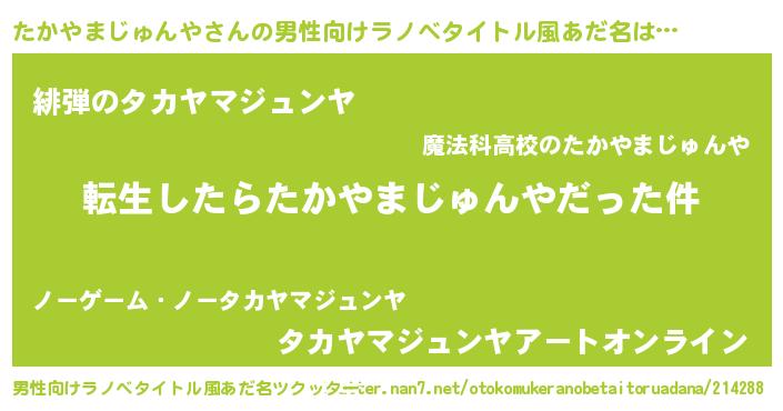 | 料理風あだ名 | 『たかやまじゅんやごはん』 |