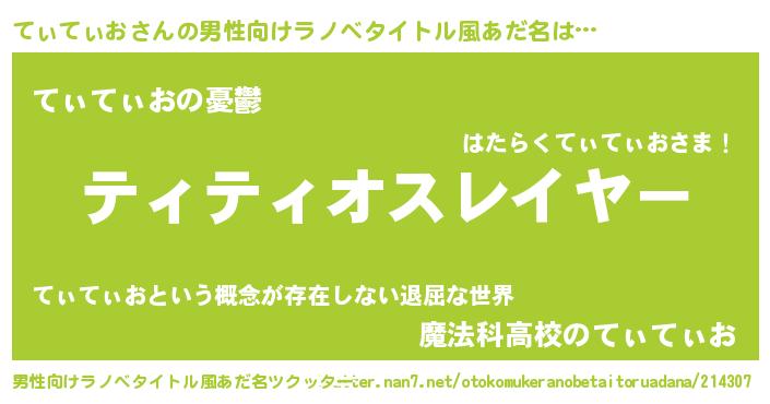 | 胡散臭い通販商品みたいなあだ名 | 『必ず成功する水晶球…その名も「てぃてぃお」』 |