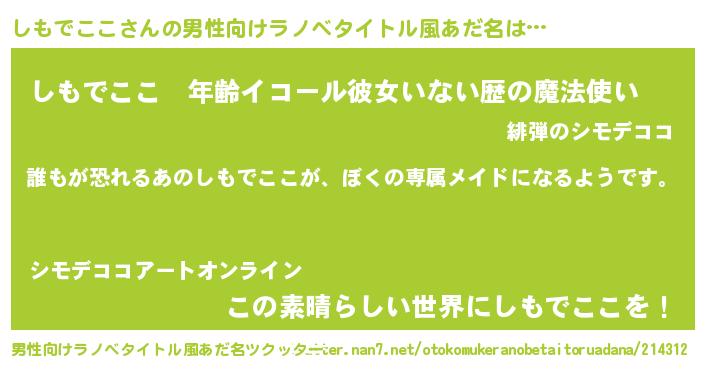 | 女子向けラノベタイトル風あだ名 | 『しもでここの契約王妃』 |