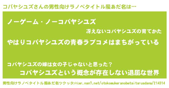 | 女子向けラノベタイトル風あだ名 | 『コバヤシユズの雑貨屋さん』 |