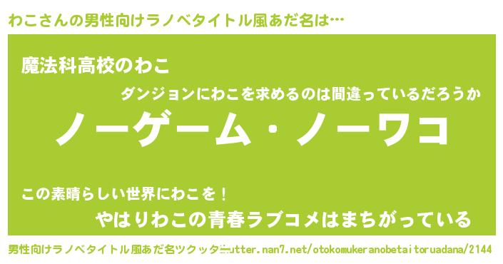 | 女子向けラノベタイトル風あだ名 | 『死神わこの再婚』『わこアンティーク』 |