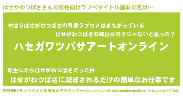 | 女子向けラノベタイトル風あだ名 | 『はせがわつばさ姫と円卓の騎士』 |