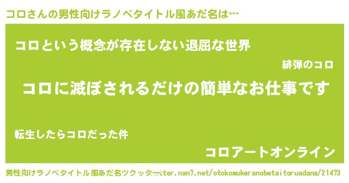 | ファンタジー風あだ名 | 『コロディッシュ』『コロフェル』 |