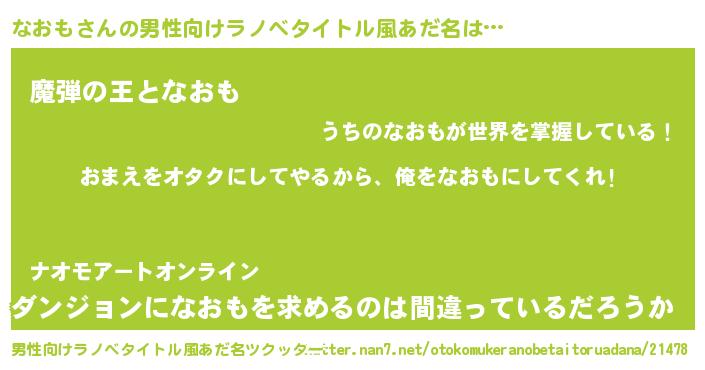 | 女子向けラノベタイトル風あだ名 | 『なおも夫妻のなれそめ』 |