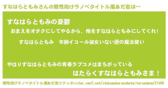 | 女子向けラノベタイトル風あだ名 | 『すなはらともみの玉の輿計画!』 |
