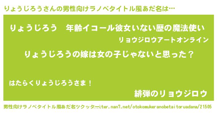 | 女子向けラノベタイトル風あだ名 | 『りょうじろう様がみてる』 |