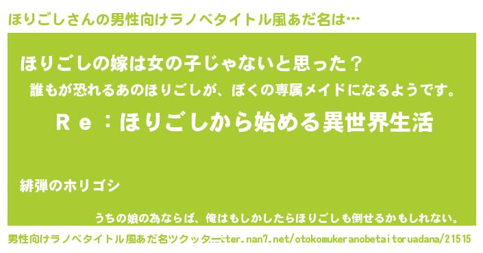 | 女子向けラノベタイトル風あだ名 | 『闇のほりごし』『ほりごしの婚約者』 |