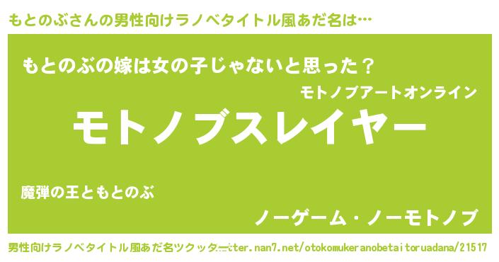 もとのぶさんの男性向けラノベタイトル風あだ名をツクッター!