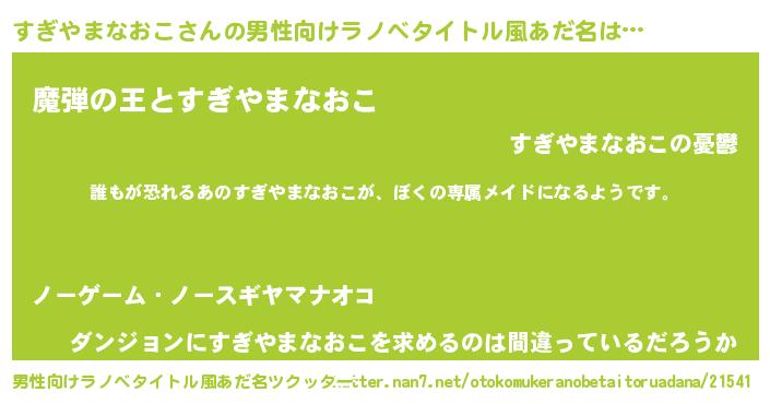 | 女子向けラノベタイトル風あだ名 | 『異世界でカフェすぎやまなおこを開店しました。』 |