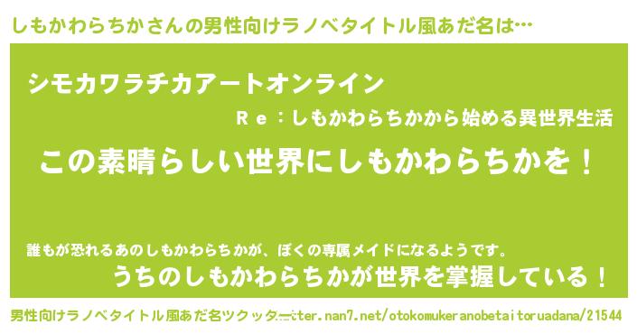 | 意味不明あだ名 | 『住所不定無職しもかわらちか(12歳)』 |