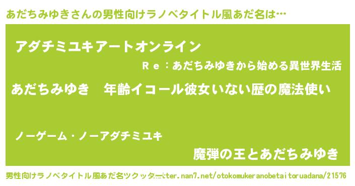 あだちみゆきさんの男性向けラノベタイトル風あだ名をツクッター!