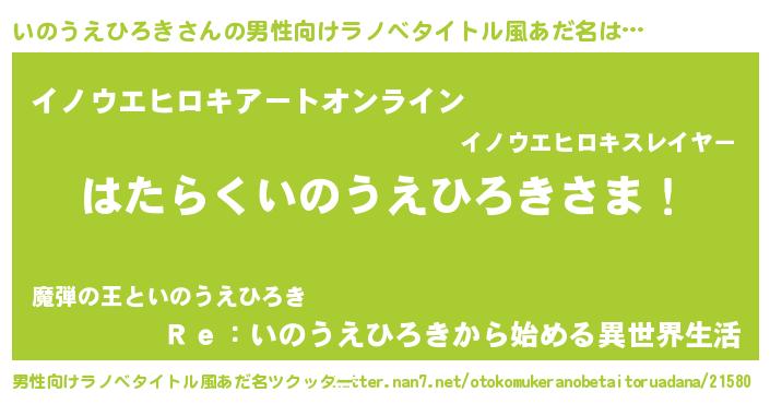| 胡散臭い通販商品みたいなあだ名 | 『必ず成功するブレスレット…その名も「いのうえひろき」』 |