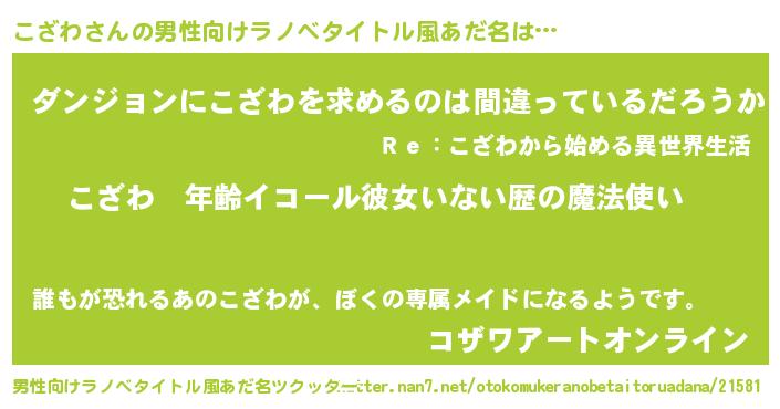 | 女子向けラノベタイトル風あだ名 | 『こざわの玉の輿計画!』 |