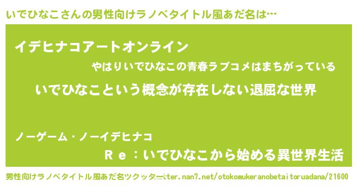 | 女子向けラノベタイトル風あだ名 | 『いでひなこの契約王妃』 |