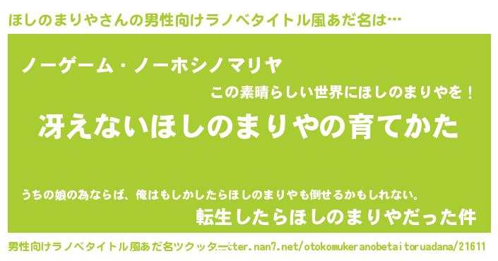 | 女子向けラノベタイトル風あだ名 | 『シンデレラほしのまりや家の靴箱館』 |