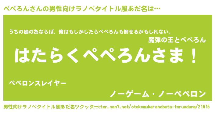| ヒーロー風カッコイイあだ名 | 『ウルトラぺぺろんマン』『仮面ペペダー』 |