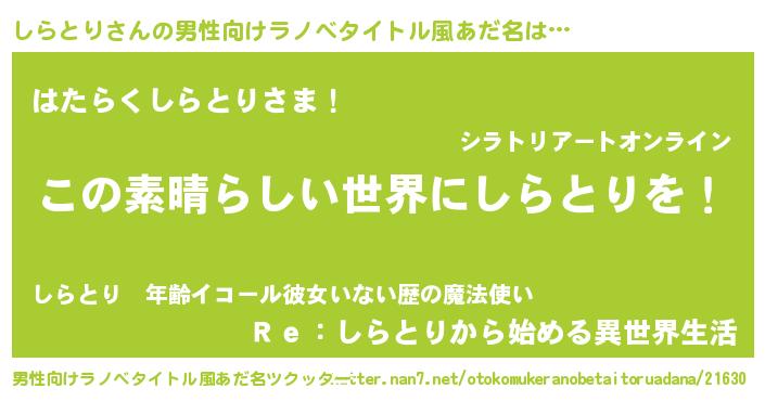 | 女子向けラノベタイトル風あだ名 | 『悪役しらとりに転生したようですが、知った事ではありません』 |