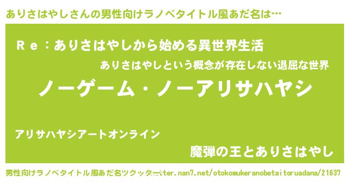 | 女子向けラノベタイトル風あだ名 | 『死神ありさはやしの再婚』 |