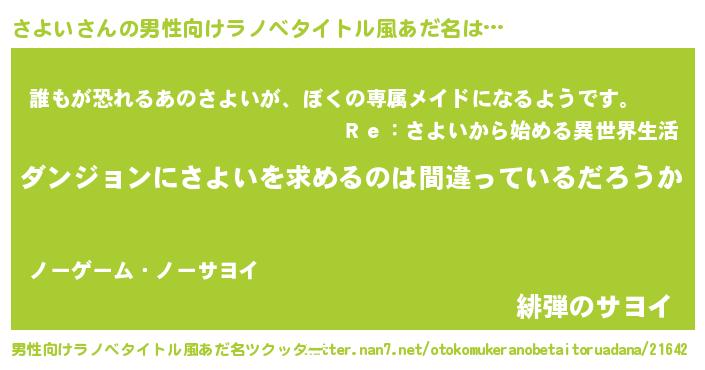さよいさんの男性向けラノベタイトル風あだ名をツクッター!