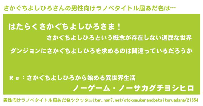 | 女子向けラノベタイトル風あだ名 | 『さかぐちよしひろの卵を拾いまして』 |