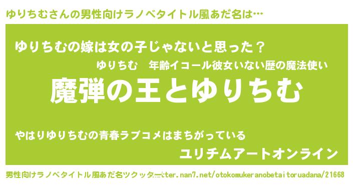 ゆりちむさんの男性向けラノベタイトル風あだ名をツクッター!