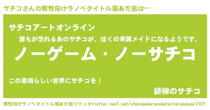 | ヘコむあだ名 | 『サチもー』『サチコ(小並感)』 |