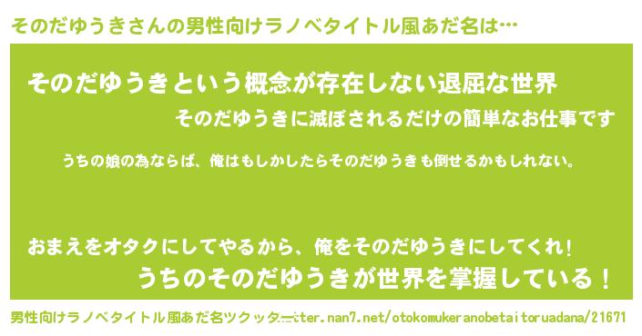 | ファンタジー風あだ名 | 『エターナルソノダユウキー』 |