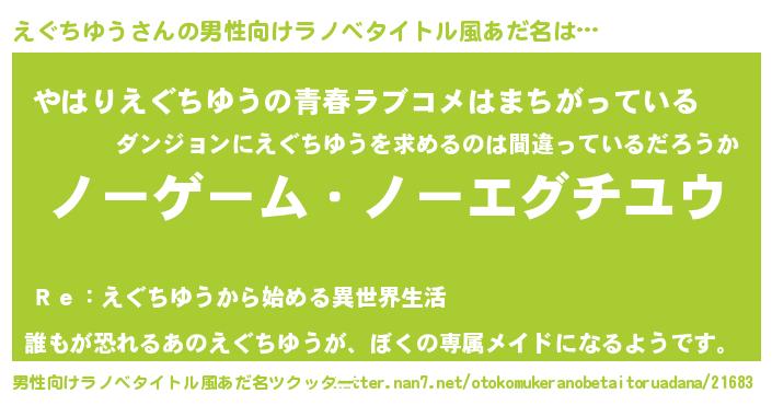 | ヒーロー風カッコイイあだ名 | 『慈愛の使者えぐちゆう』『幻影騎士エグ』 |
