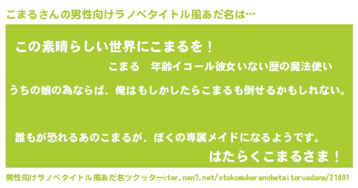 | ヘコむあだ名 | 『なまこ酢』『こまる(笑)』『こまを』 |