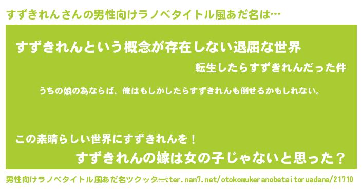| 胡散臭い通販商品みたいなあだ名 | 『運命の人と巡り会える高級そうな壺…その名も「すずきれん」』 |