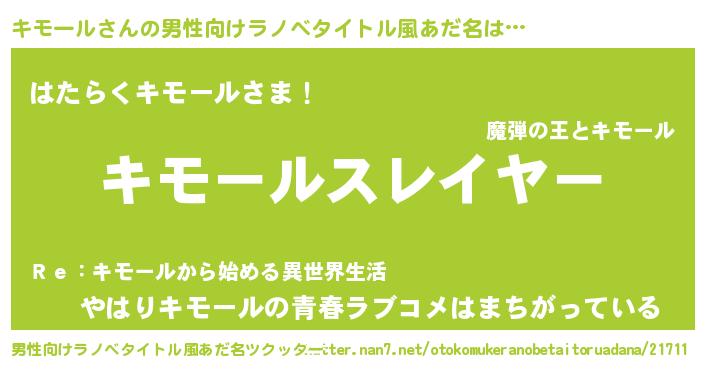 | 意味不明あだ名 | 『めかぶ科キモール属』『自称キモール』 |